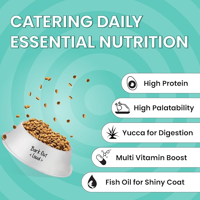 BARK OUT LOUD Essentials Adult Dog Food for Medium & Large Breed | Real Chicken & Egg | Gluten-Free, Prebiotics & Fish Oil for Immunity | Dry Dog Food for Labrador, Retriever, Husky – 9.8 Kg