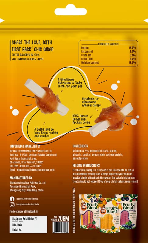 FirstBark Chic Wrap Chees & Chicken Wraps Flavour (Pack of 3) Sold by DogsNCats, All Life Stages, stick