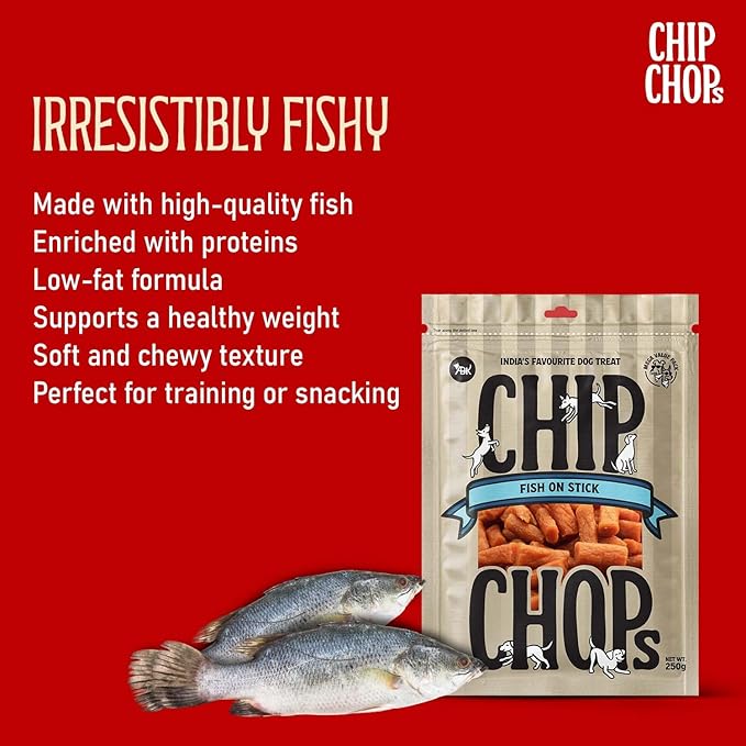 Chip Chops Fish on Stick Dog Treats – Highly Nutritious, Easily Digestible, Optimum Health Formula, Ideal for Training, Snacking & Rewards for All Dog Breeds – 250g