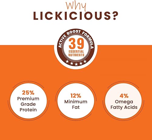 - 1. Active Boost Formula: LICKICIOUS dry dog food adult contains a unique Active Boost Formula with 39 Essential Nutrients. blend to support your dog's overall health and vitality. With 39 essential nutrients, including vitamins, minerals and antioxidants, LICKICIOUS pet food for dogs adult promotes optimal well-being from the inside out.