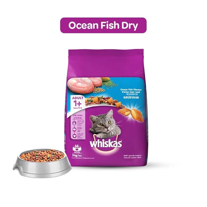 Whiskas Adult Cat Food Combo - Ocean Fish Dry, 3kg + Tuna in Jelly, 85g (6 Pouches)